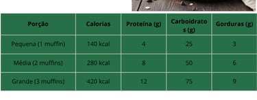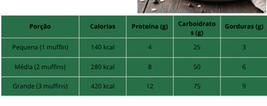tabelas nutricionais para três porções distintas com base nas suas metas
